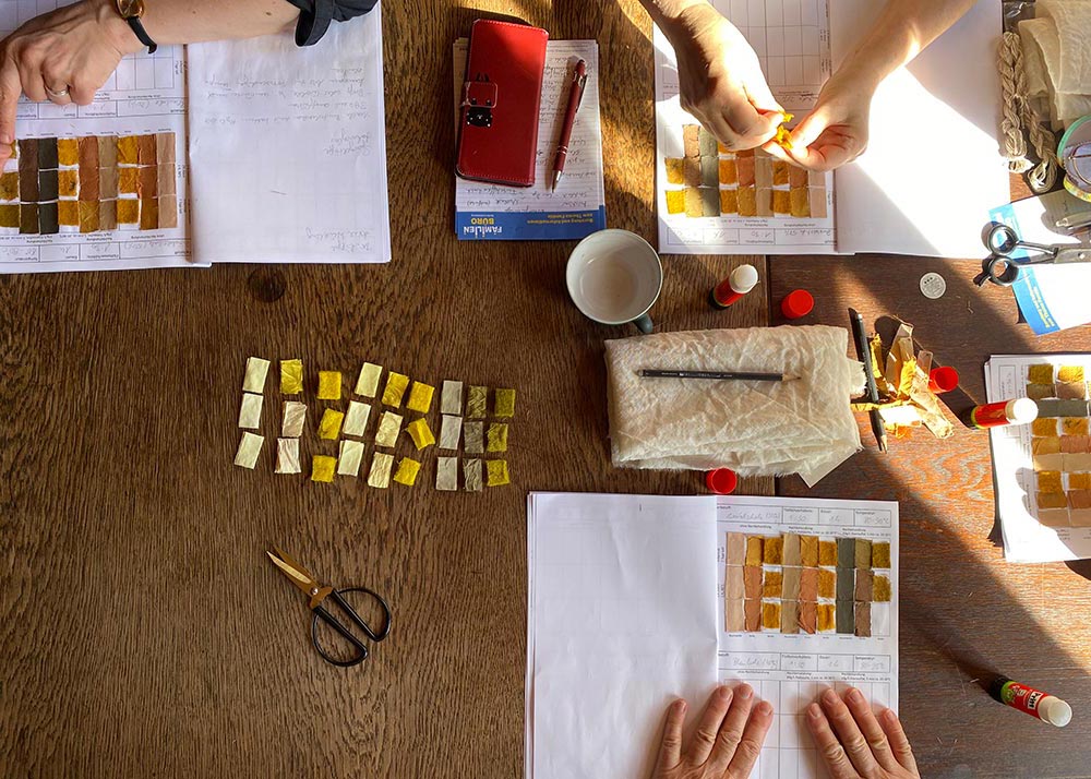 Shibori, Wachsbatik, Färben mit Pflanzenfarben, Goldstickerei, Lunéville-Stickerei, Nadelspitze, Handstickerei, Bildwirkerei, Knüpfen, Kelim, Sashiko, Smocking, Ikat-Weberei, Schaftweberei