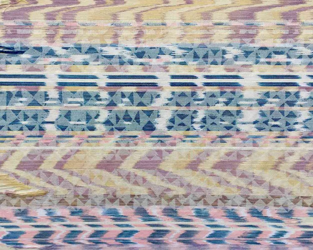 Im Rahmen des zweitägigen Intensiv-Kurses lernen wir die Reservetechnik des Ikat kennen. Zu Beginn werden Bündel von Schussgarnen wiederholt abgebunden und gefärbt. Diese Garne können dann in freier Kombination, oder auch mit bereits vorhandenen Ikatgarnen und in unterschiedlichen Gewebebindungen zu Schuss-Ikats verwebt werden.