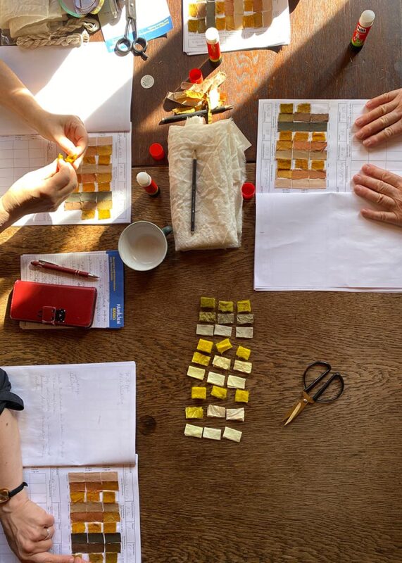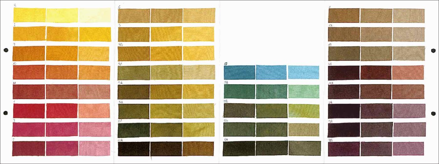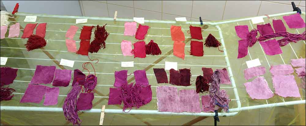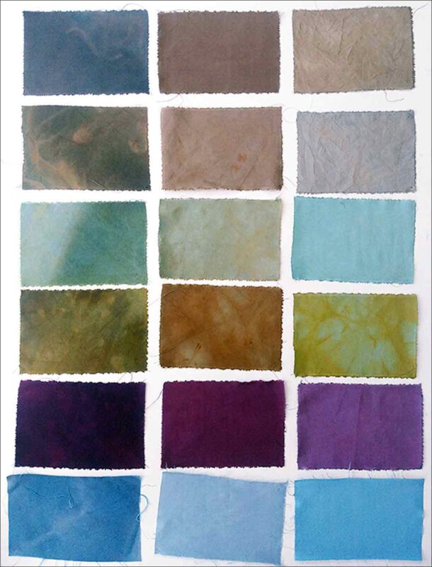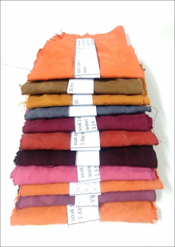 An zwei Tagen wird durch Überfärbungen und Nachbehandlungen aus natürlichen und weltweit traditionell verwendeten Färbematerialien eine große Farbpalette für das Färben von Pflanzenfasern, Wolle und Seide erstellt. Der Fokus dieses Einstiegskurses liegt hierbei auf der Erstellung eines kleinen Rezeptbüchleins mit entsprechend gefärbten Stoffproben. Mitgebrachte Garne aus Wolle und Seide können im Rahmen des Kurses ebenfalls gebeizt und gefärbt werden.