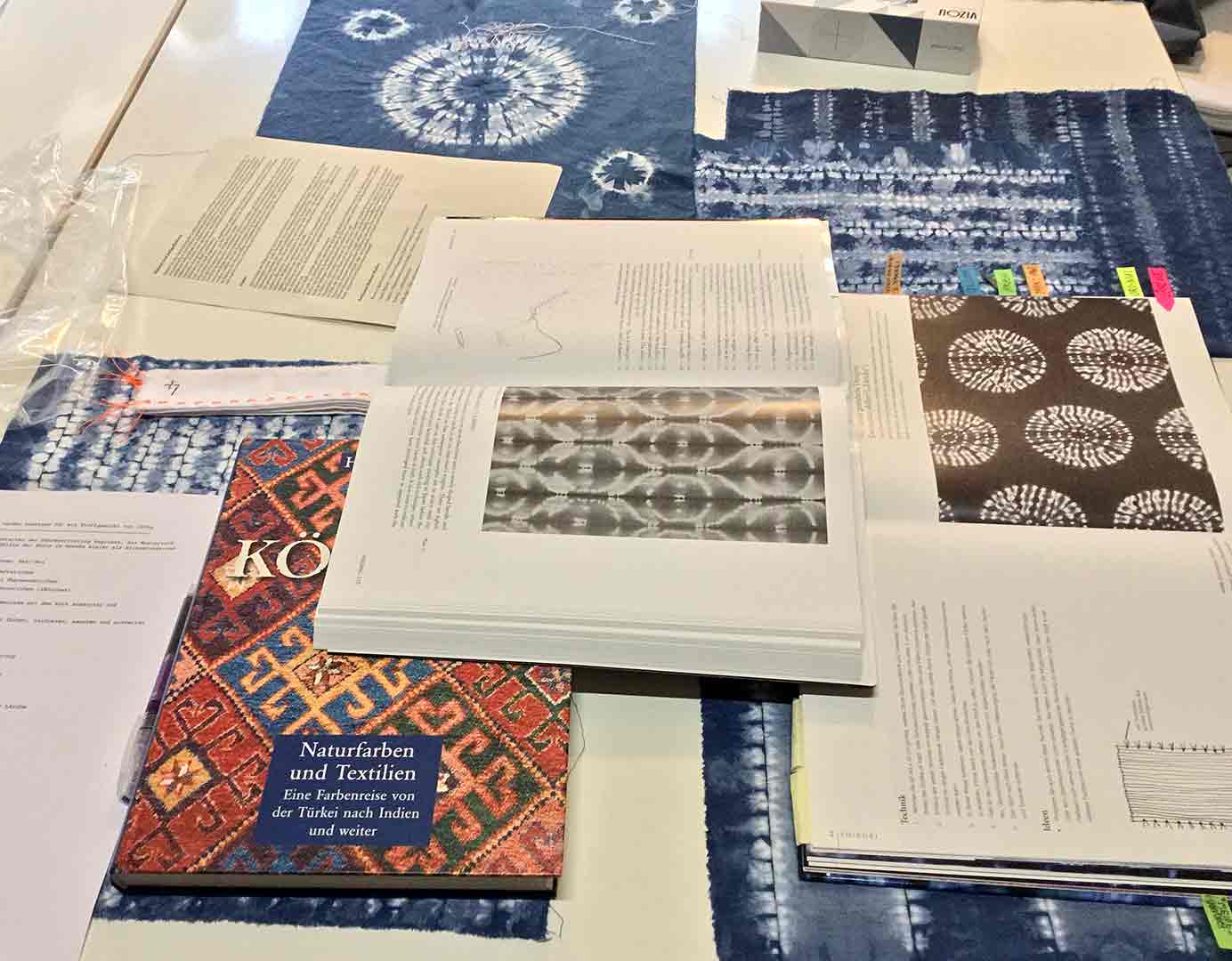 zzgl. Materialkosten: 20 € für verschiedene Stoffsorten, Stickgarn, Chemikalien der Indigoküpen