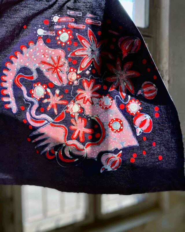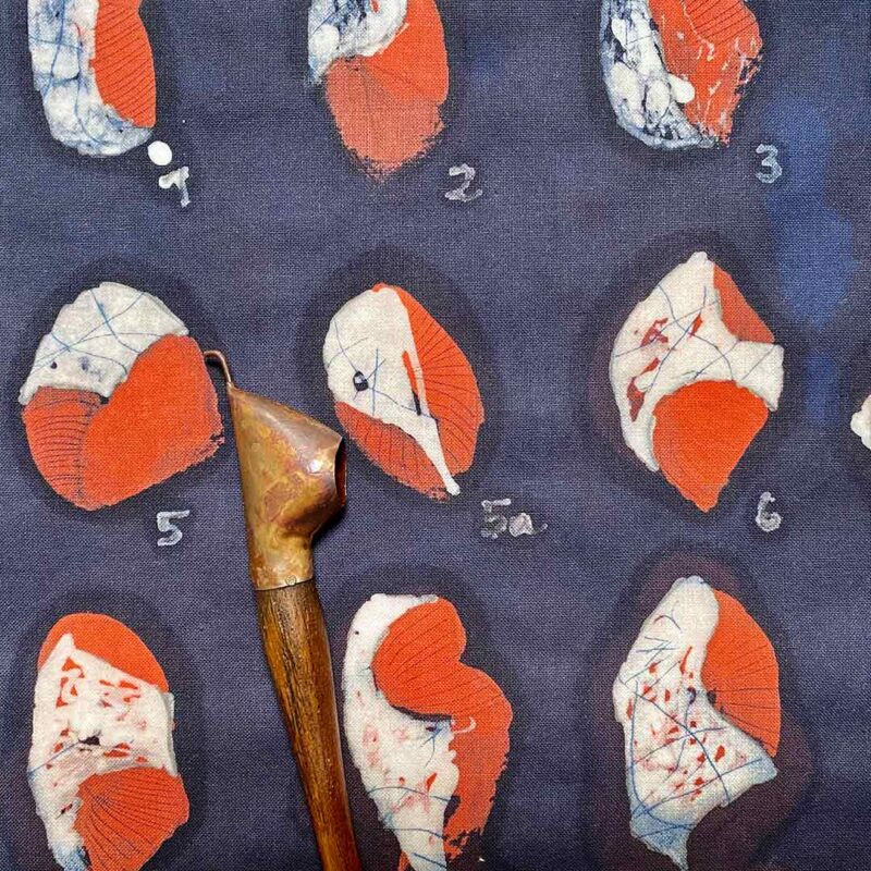 Im Rahmen des Kurses sollen verschiedene Methoden der Wachsreservierung vermittelt und erlernt werden, verbunden mit dem Ziel einer eigenen Sammlung von Mustertüchern.