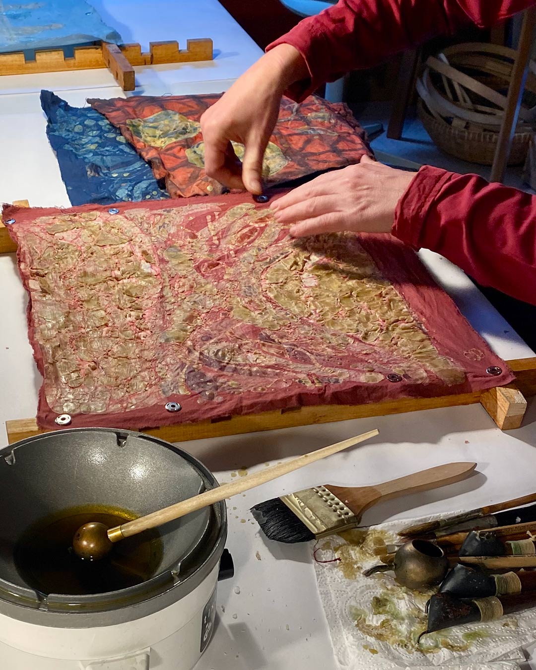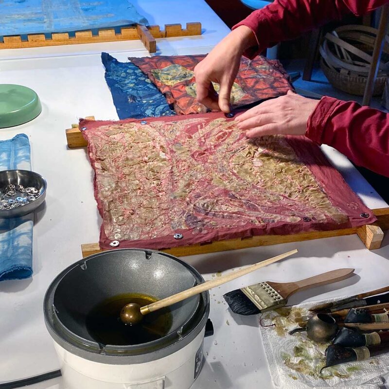 Wachsbatik und Indigo-Färben